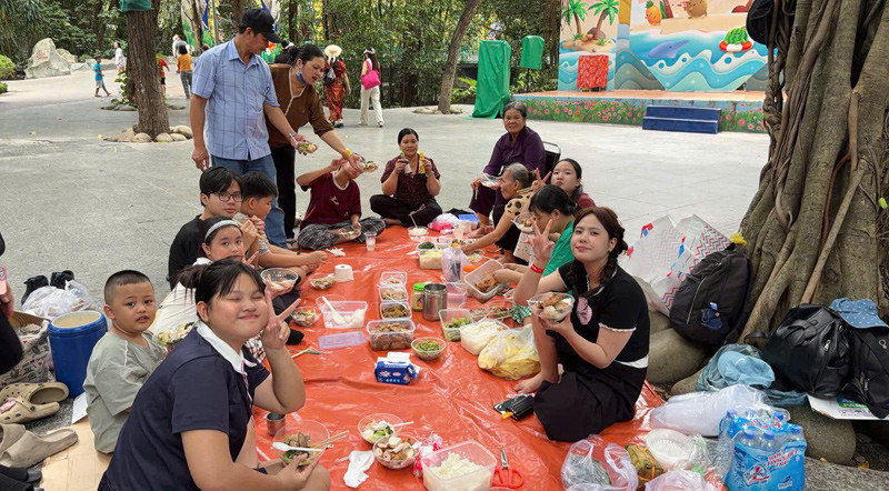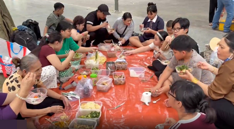 “Đoàn nhà tôi có nhiều trẻ nhỏ. Mọi người lo ăn bên ngoài sẽ không đủ no, lại không vệ sinh. Nấu đồ ăn đem đi dẫu cực chút nhưng ăn uống lại no nê... Chưa kể, gia đình quây quần, không khí rất vui vẻ và ấm áp”, Ngọc Trân chia sẻ.