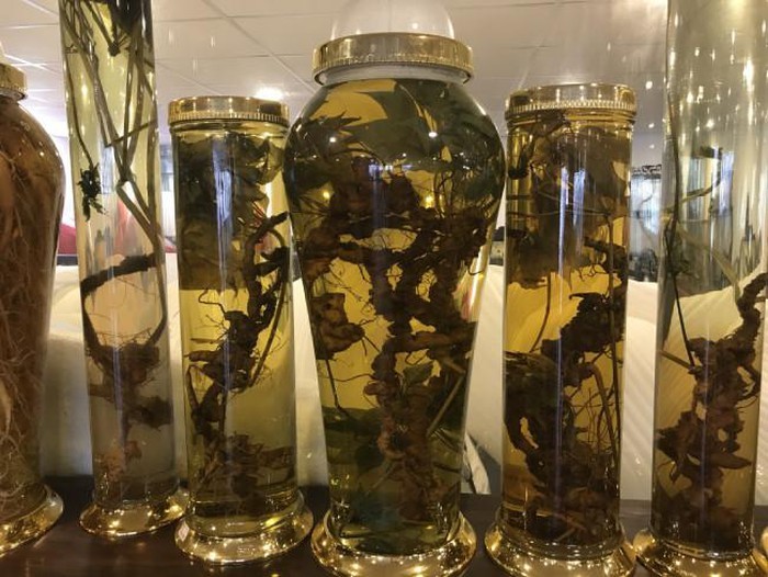 Lý giải về điều này, anh cho biết trước đây nhiều người bán sâm ngọc linh giả. Tức là, họ thường lấy củ tam thất, cắt hết lá đi để làm giả sâm ngọc linh, bán với giá cao. Vì theo đó, những củ sâm dài, thẳng khi ngâm vào bình sẽ khoe được hết vẻ đẹp của nó.