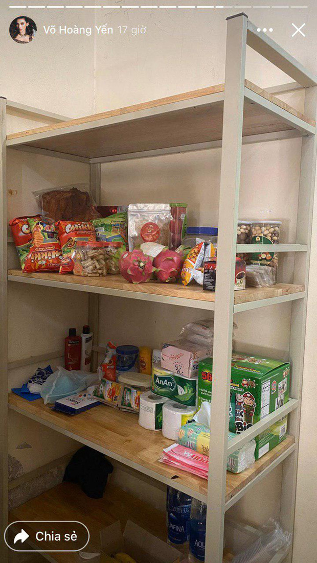 Mới đây, Võ Hoàng Yến còn khiến nhiều người không khỏi bật cười với ý định mở tiệm tạp hoá tại khu cách ly vì đồ ăn, hoa quả và vật dụng cá nhân được gửi vào quá nhiều. Muốn kinh doanh là phải đầu tư trang hoàng cửa hiệu, Võ Hoàng Yến đã kỳ công trưng bày cả 1 kệ hàng hoá đủ mặt hàng vô cùng hoành tráng và mang lên trang cá nhân để PR, rao bán hàng.
