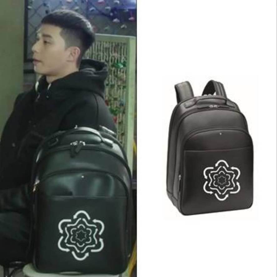 Thanh niên Sae Ro Yi đeo ba lô trông bảnh bao, dễ cưng ra phết. Cơ mà muốn mua balo giống anh thì bạn cứ phải chuẩn bị đủ "thóc" cỡ 25 triệu để sắm em balo này của Montblanc đã nhé.