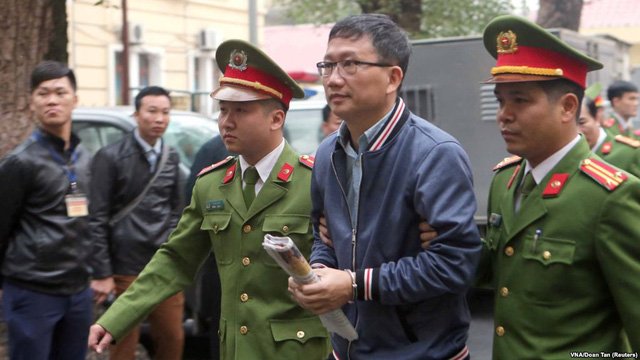 Trịnh Xuân Thanh khi ra tòa đã không còn được đeo đồng hồ hàng triệu USD mà muôn người ao ước có nó, thay vào đó là chiếc còng số 8 nghiệt ngã (Ảnh Reuter)
