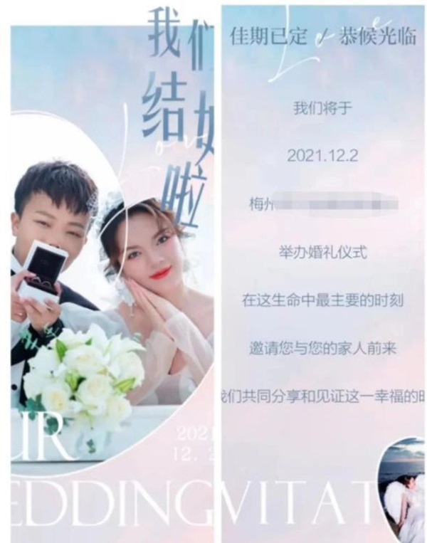 Cho đến ngày 8/11 vừa qua, một cư dân mạng đã tiết lộ về tấm thiệp cưới đáng yêu vừa nhận được từ vị đại gia "dỏm" từng rất hot trên mạng này. Trong đó tiết lộ hình ảnh cô dâu chú rể cùng ngày hôn lễ sẽ chính thức diễn ra là ngày 2/12/2021, nghĩa là không đến một tháng nữa.