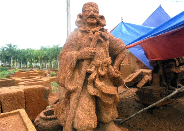 Không chỉ dừng lại ở việc xây nhà dựng cổng, đá ong còn là chất liệu tạo điểm nhấn cho nhiều công trình đòi hỏi có tính nghệ thuật cao, khắc lên những tác phẩm vô cùng độc đáo.