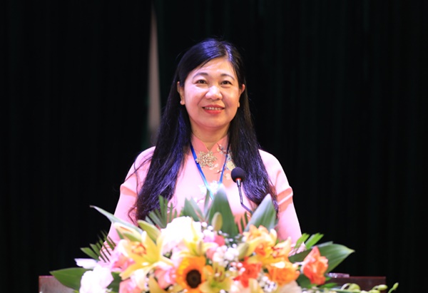 Chủ tịch Ủy ban MTTQ Việt Nam Thành phố, Chủ tịch HAUFO Nguyễn Lan Hương phát biểu khai mạc Đại hội