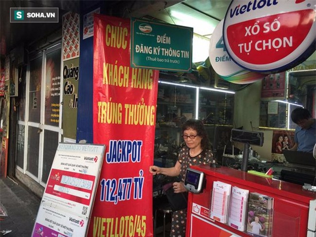 "Cửa hàng có làm tấm phông biển lớn treo trước nhà với nội dung chúc mừng khách hàng trúng thưởng 112,477 tỷ Vietlott 6/45 để mọi người và vị khách may mắn đó có quay lại thì biết việc trúng thưởng.