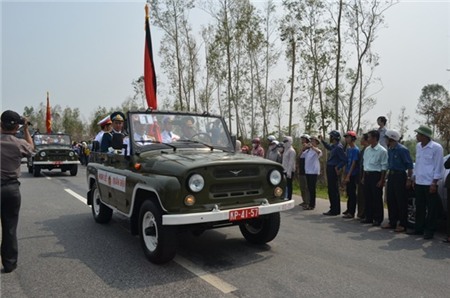- Người dân Thị trấn Ba Đồn (Quảng Trạch) đổ ra đường 1A đón Đại tướng, làm tốc độ di chuyển chậm lại. Đoàn xe phải dừng lại ít phút.