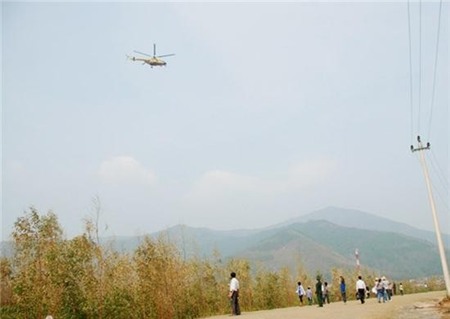 Trực thăng quân đội thị sát trên bầu trời khu vực Vũng Chùa. Ảnh: Tuổi Trẻ