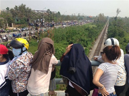 "Hiện đoàn xe mới đi được 5km tính từ sân bay Đồng Hới ra quốc lộ 1A. Đây cũng là nơi đánh dấu bắt đầu đến địa phận của huyện Bố Trạch. Do người dân đứng hai bên đường quá đông nên tốc độ di chuyển của đoàn có phần chậm", PV Phạm Hóa cho biết.