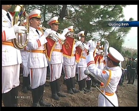 - "Đoàn rước linh cữu Đại tướng đã qua thị trấn Ba Đồn và gần vào tới cảng Hòn La", Phạm Hòa cho biết.