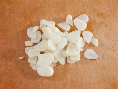 ![]() | ![]() Tỏi bóc vỏ lụa, cắt lát mỏng. |