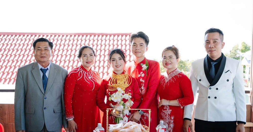 Trời mưa to nhưng đám cưới vẫn rất thành công, với sự góp mặt của nhiều người thân.
