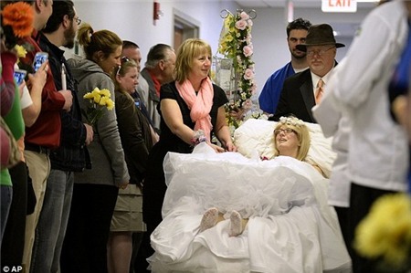 Trước khi đặt chân sang thế giới bên kia do mắc bệnh ung thư xương giai đoạn cuối, 1 cô dâu người Mỹ đã được mặc chiếc váy trắng và kết hôn cùng người yêu lâu năm. Đám cưới khiến bất cứ ai chứng kiến cũng phải rưng rưng nước mắt.