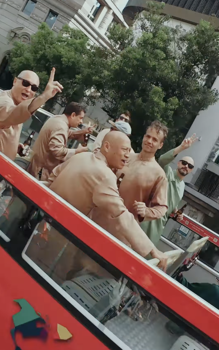 Ekip đã chuẩn bị hẳn một két bia lạnh trên xe buýt để “tiếp sức” dàn khách mời quốc tế – một chi tiết nhỏ nhưng khiến ai chứng kiến cũng phải mỉm cười.
