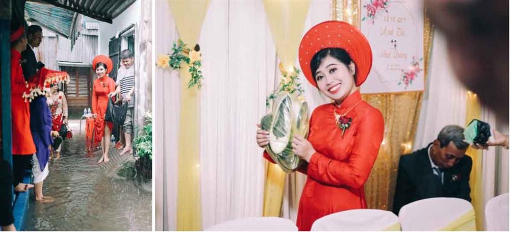 Với nhiều cô dâu chú rể, việc có đám cưới mà xảy ra mưa lũ gây ngập sẽ gây phiền phức về nhiều mặt. Tuy nhiên với Minh Thư, nó giống một trải nghiệm đáng nhớ và có chút gì đó bản sắc quê hương.