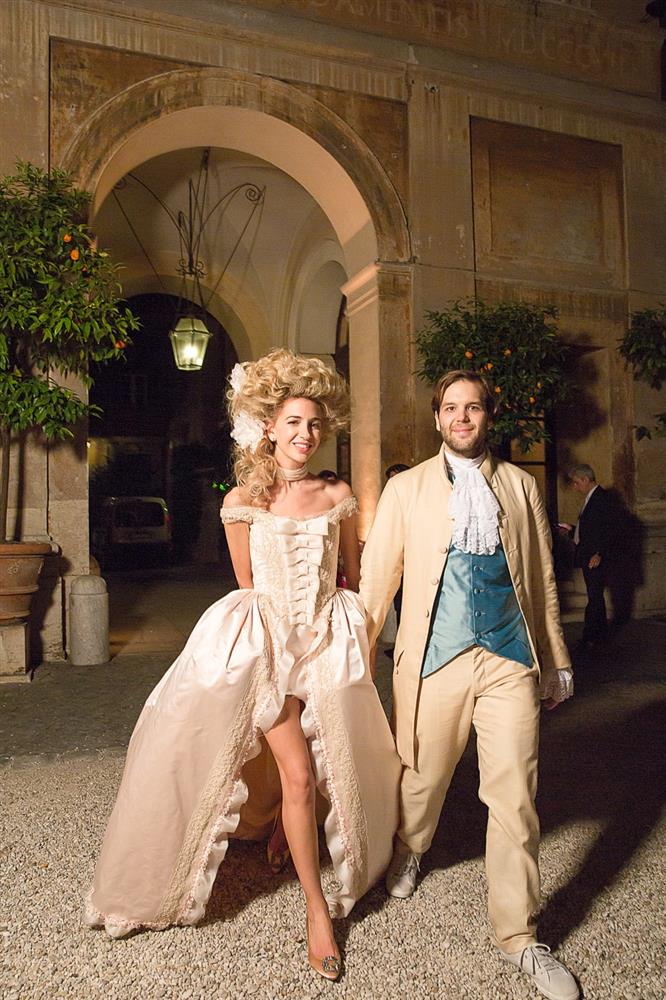 Đêm trước ngày cưới, cô dâu chú rể diện trang phục quý tộc thế kỷ 18 tổ chức tiệc cùng người thân, bạn bè theo chủ đề: "Les Liaisons Dangereuse" (Quan hệ nguy hiểm).
