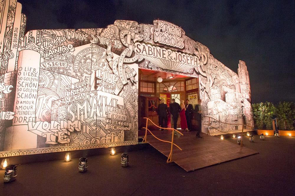 Một rạp xiếc đã được bí mật dựng trong lâu đài trở thành nơi đãi tiệc. Bên trong được trang trí theo phong cách Vintage cổ điển cực kỳ lãng mạn và cầu kỳ. Cô dâu diện chiếc váy Haute Couture thứ 2 và hào hứng nhảy cùng chú rể trong đám cưới.