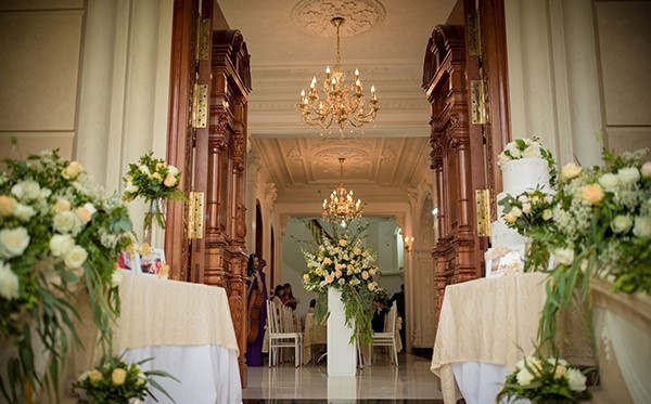 Chiếc cổng và rạp cưới được trang trí bằng hoa tươi