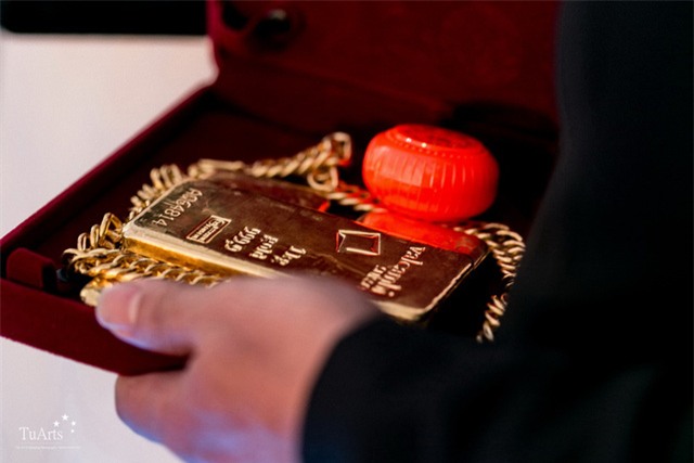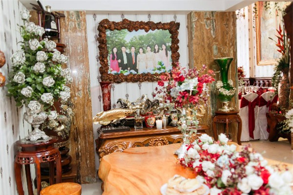 Sau khi kết thúc lễ gia tiên, đám cưới tiếp tục được diễn ra tại một khách sạn 5 sao của Tp Hồ Chí Minh.