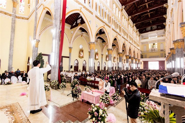 Đầu tiên, đám cưới được tổ chức hoành tráng và lung linh ở một nhà thờ trong TP. Hồ Chí Minh: