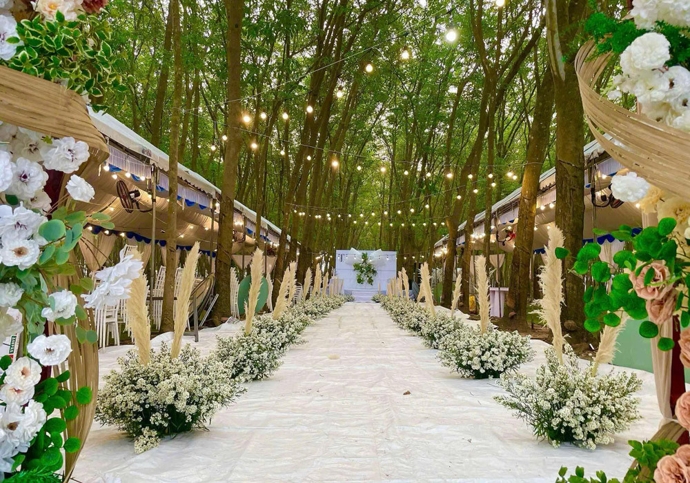 Trước đó, cô dâu Bình Dương đã dành hơn 3 tháng để chuẩn bị cho hôn lễ. Vợ chồng Huyền muốn có đám cưới ngoài trời nên quyết định tổ chức ở rừng cao su.