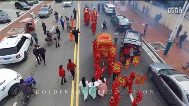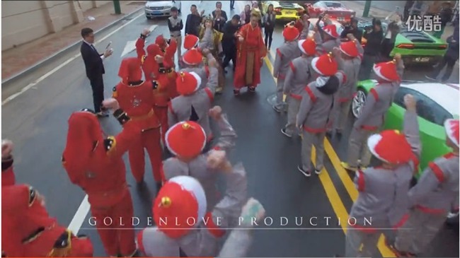 Lễ rước dâu của cặp đôi được tổ chức theo phong tục truyền thống. Chú rể và quan khách mặc trang phục thời Tần Thủy Hoàng. Thậm chí lễ rước dâu còn sử dụng kiệu thay ô tô khiến nhiều người không khỏi ngỡ ngàng về sự xa hoa.