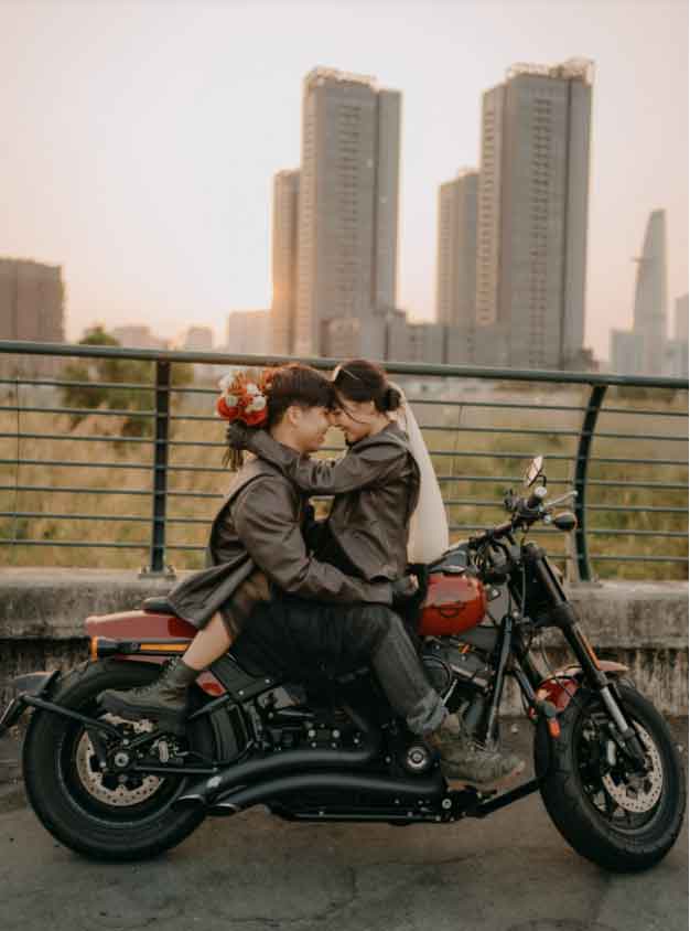 Bộ ảnh cưới cùng mô tô ở những địa điểm quen thuộc của TP.HCM.
