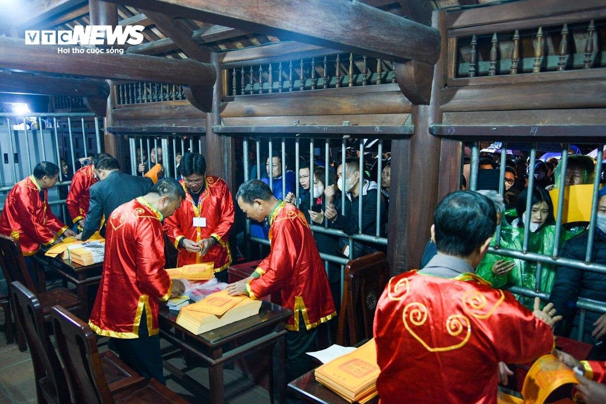 Đúng 5h ngày 24/2, (tức ngày 15 tháng Giêng), hàng nghìn du khách đã có mặt tại các điểm phát ấn để nhận cánh ấn lộc đầu năm.