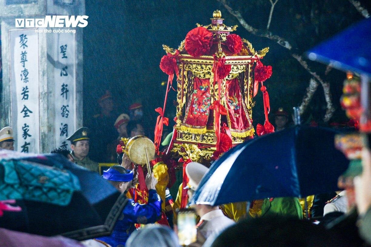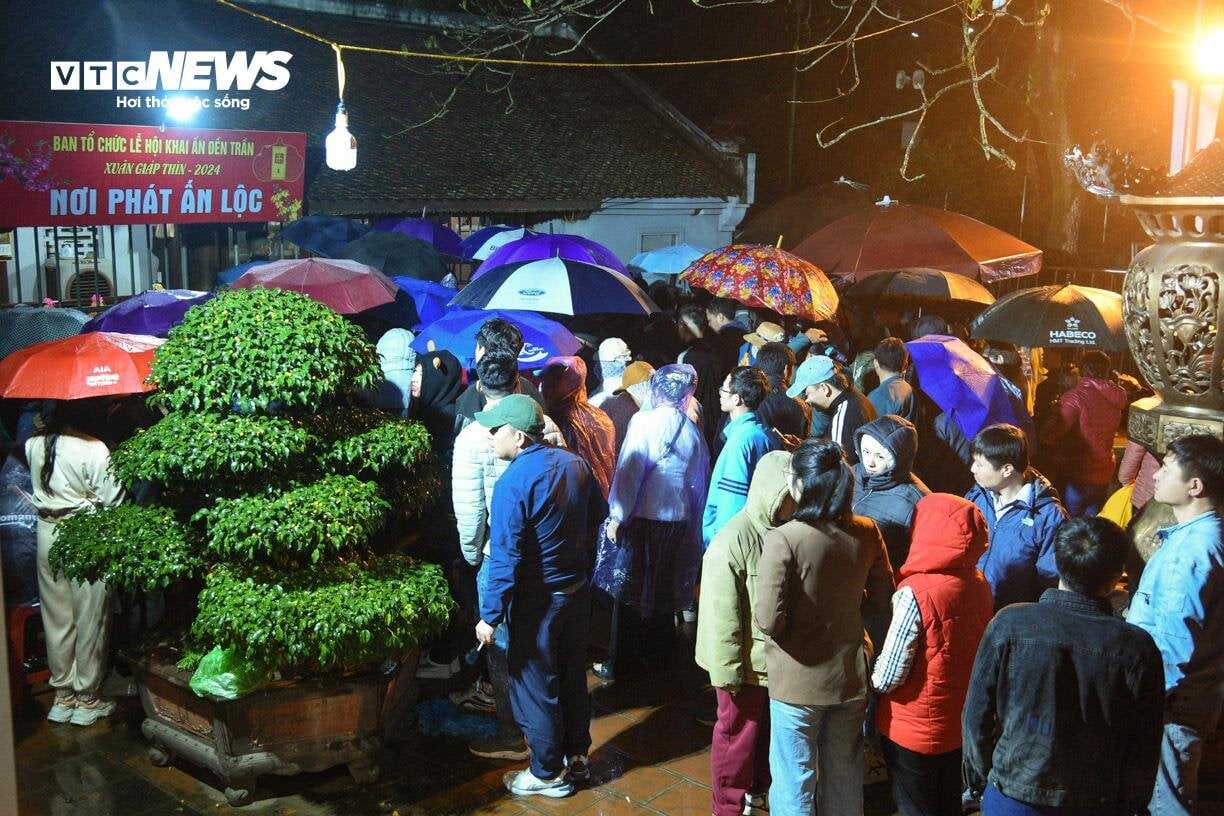 Dù thời tiết rất lạnh, mưa dày hạt nhưng tại khu vực bên ngoài đền, hàng vạn người vẫn kiên trì đứng chờ dự lễ khai ấn.