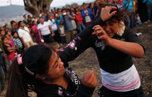 Đôi khi cả đàn ông và trẻ em cũng tham gia. Cuộc chiến sẽ kéo dài đến tối, sau đó mọi người cùng ôm nhau và quay trở về nhà.