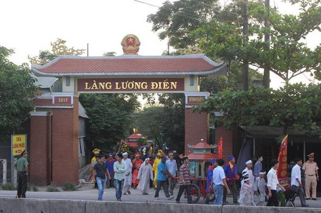Linh cữu anh Đặng Xuân Phóng ra đến cổng làng để lên nghĩa trang...