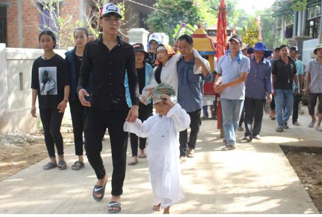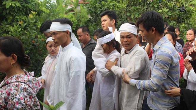 Nhìn đứa con còn nhỏ chưa cảm nhận được hết nỗi đau mất cha. Cô con con gái lớn đang ở tuổi “ăn chưa no, lo chưa tới” không còn đứng vững trước di ảnh và linh cữu cha trong phút ly biệt ai cũng nghẹn ngào.