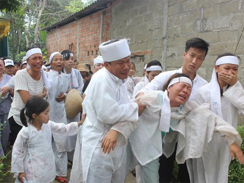 Cô dâu Lê Thị Yên (quê Bình Định) cũng có mặt trong dòng người đưa tiễn. Kể từ hôm nhận tin chồng gặp nạn, chị đã tức tốc bắt xe ra Lương Điền để chịu tang chồng. Đến nay đã mấy hôm chị quỳ bên quan tài chú rể Nguyễn Khắc Long hết khóc đến gọi tên chồng trong đau đớn. Lúc đưa tang, chị Yên ngất lịm trong vòng tay người thân.