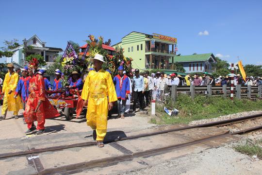 Đúng 13 giờ 30 phút cùng ngày, sau lễ di quan, 3 chiếc xe tang chở linh cữu các nạn nhân lần lượt lăn bánh. Suốt quãng đường gần 3 km ra nghĩa trang xã Hải Sơn, không khí trầm buồn đến nghẹt thở. Nhiều người thân của gia đình chú rể Nguyễn Khắc Long khóc nghẹn và ngất lịm đi trong lúc đưa tang.