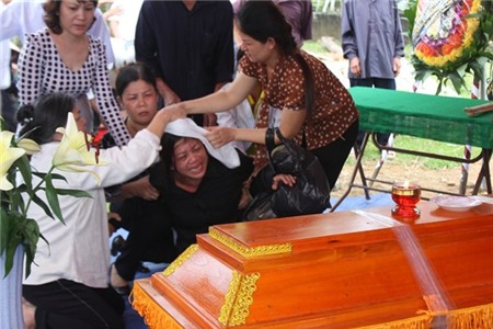Bà Hà vật vã trước thi hài ông Dũng. |
