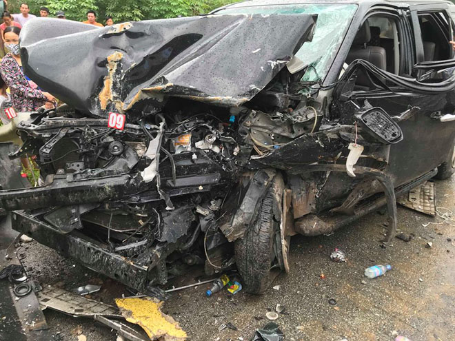 Đúng lúc này, xe ô tô 4 chỗ mang biển kiểm soát 30E-158xx (chạy hướng Nội Bài- Lào Cai) lưu thông tới đâm thẳng vào sườn xe khách. Vụ va chạm mạnh khiến 5 người bị thương phải vào bệnh viện Cẩm Khê (Phú Thọ) cấp cứu. Trong đó, 4 người ngồi trên xe ô tô con bị thương; 1 người bị thương trên xe khách.