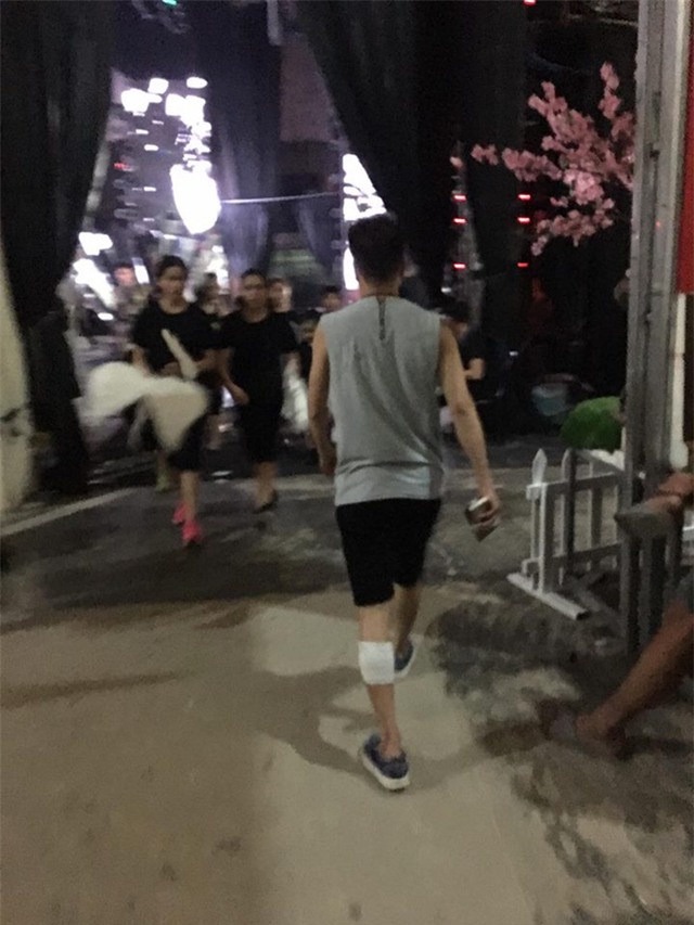 Kèm theo dòng chia sẻ, chị Hương còn đăng một số hình ảnh Mr. Đàm đang được các đồng nghiệp sơ cứu, băng bó cùng đôi giày dính máu.