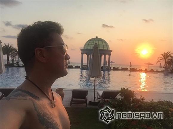 Trong chuyến du lịch đến Phú Quốc, Đàm Vĩnh Hưng đã cởi trần đi bơi ở resort và vô tình để lộ hình xăm con rồng xanh mới kéo dài từ vai đến ngực phải.