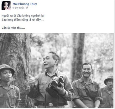 Ngoài ra, nhà báo Phan Thúy Thảo cũng chia sẻ bài thơ "Vị tướng già" của nhà thơ Anh Ngọc, trong đó có đoạn: