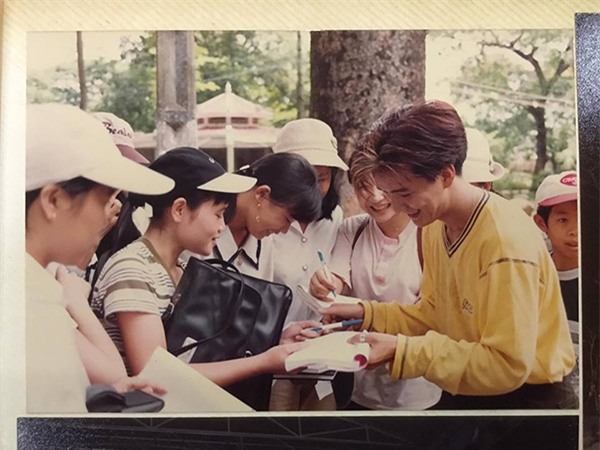 Đàm Vĩnh Hưng vui vẻ ký tặng người hâm mộ.