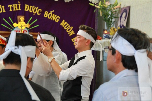 Nam ca sĩ không giấu nổi buồn bã trước sự ra đi của ông ngoại mình trong lễ tẩm liệm sáng nay.