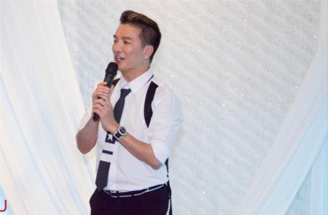 Nam ca sĩ vui vẻ hát tặng mọi người trong sự kiện. |