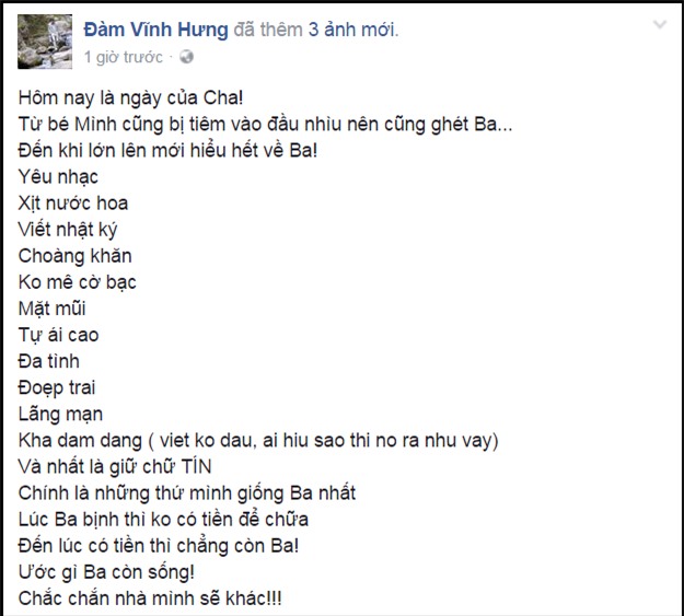 Mới đây, "Ông hoàng nhạc Việt" Đàm Vĩnh Hưng cũng dành thời gian để viết