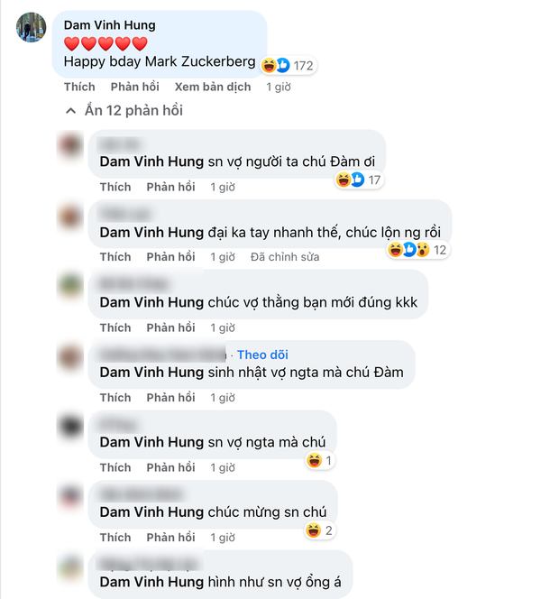 Cho tới hiện tại, bình luận của Đàm Vĩnh Hưng vẫn còn trên trang cá nhân của Mark Zuckerberg, nhận về lượng lớn icon "haha" từ dân mạng.