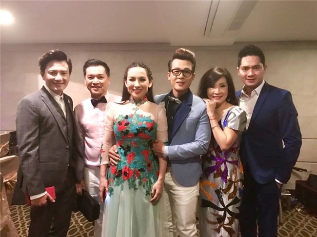 Ốc Thanh Vân diện đầm cúp ngực, chụp ảnh cùng Hòa Hiệp. Theo một nguồn tin, cô làm MC ở đám cưới. Tháp tùng MC Đường đến danh ca vọng cổ là ông xã Trí Rùa. |