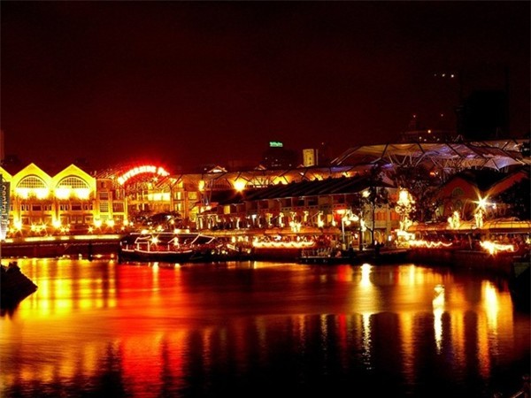 Clarke Quay về đêm lung linh các nhà hàng, quán bar và các hoạt động giải trí như karaoke.