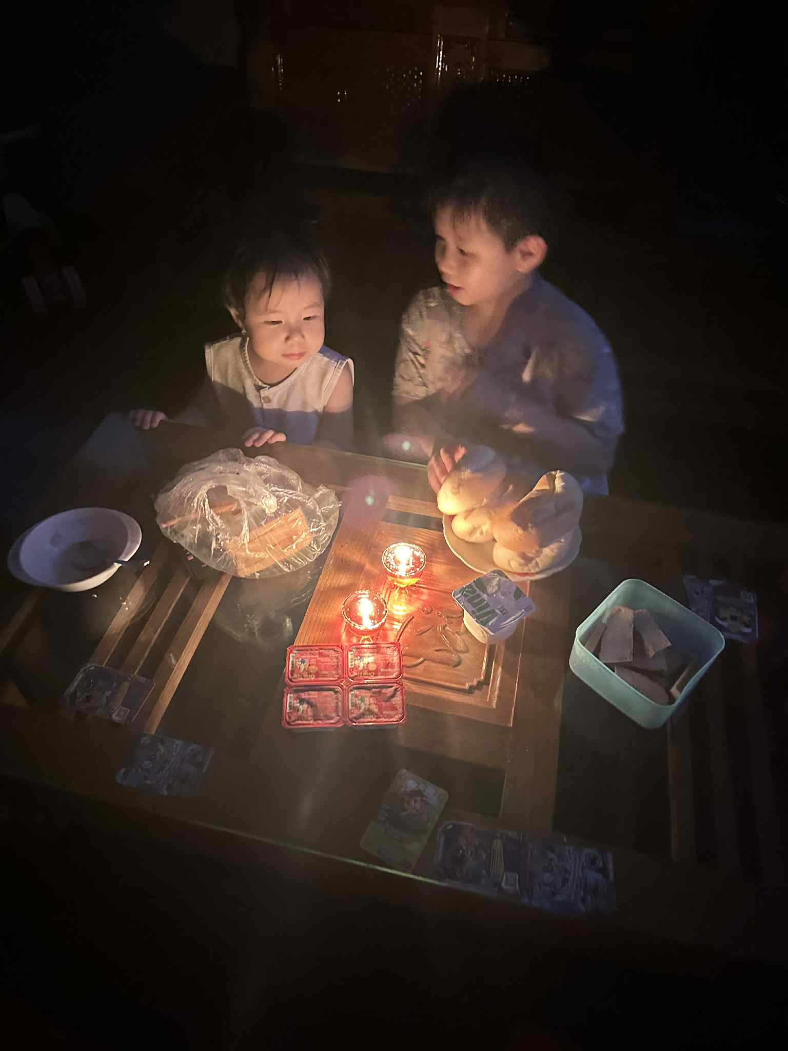 Buổi tối, cả nhà thắp nến, ăn tạm cháo, bánh mì kẹp giò chả. Chị Hồng chỉ dám rửa mặt, rửa tay chân cho con, không dám tắm vì sợ hết nước. “Ở đây đã 7 năm nhưng chưa bao giờ tôi chứng kiến cảnh ngập sâu, nước tràn cả vào sảnh, mất điện, mất nước kéo dài như thế này”, chị nói.