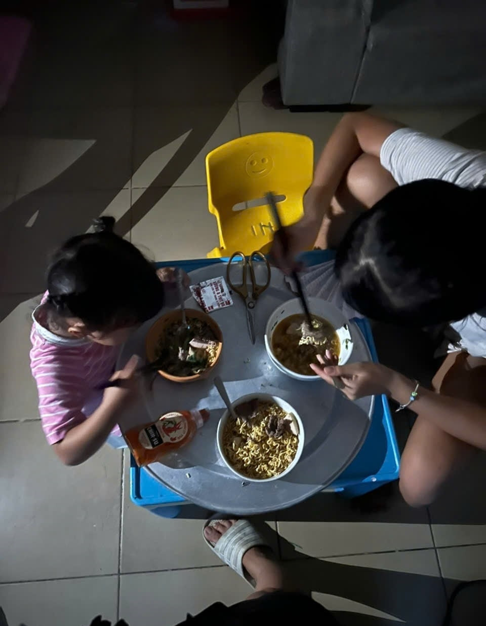 "Chồng tôi lội nước ra ngoài mua thêm bình ga, bếp ga mini phòng trường hợp mất điện kéo dài. Buổi tối, cả nhà ăn cơm bằng đèn pin điện thoại, sau đó kéo nhau đi ngủ sớm. Tôi trải chiếu dưới sàn, mở hết cửa ban công để đón gió.