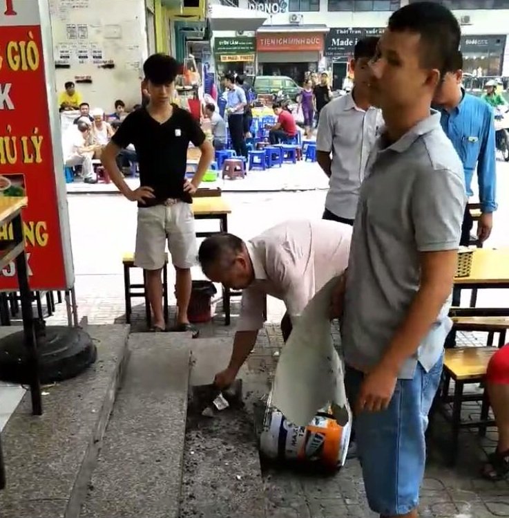 Vào khoảng 10 giờ ngày 20/8, nhiều khách hàng của nhà hàng Sen Việt tại tầng 1, khu chung cư HH Linh Đàm, phường Hoàng Liệt, quận Hoàng Mai (Hà Nội) bỗng giật bắn mình khi nghe tiếng "rầm" từ trên mái tôn. Cả tấm mái che bằng tôn bị thủng một lỗ to và thùng sơn chứa vôi vữa chui tọt xuống. Vữa trong thùng đựng sơn rơi bắn vương vãi dưới nền nhà hàng.
