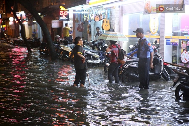 Từ 5h chiều, khi cơn mưa vẫn trút xuống dai dẳng và không ngớt, nhiều người đã lên facebook cá nhân cảnh báo nhau về tình trạng ngập và kẹt xe có thể diễn ra, các tuyến đường thuờng xuyên ngập nặng như quận Bình Tân, quận 6, quận 2 được đưa vào danh sách hạn chế lưu thông. Thế nhưng trận mưa vượt ngoài sức tưởng tượng khi... toàn Sài Gòn đều ngập lênh láng, từ quận 3 đến quận 1, từ Tân Bình đến Bình Thạnh. Các con đường Lê Lợi, Hai Bà Trưng, khu vực Nhà hát thành phố cũng mênh mông nước. Ngay cả tòa nhà Bitexco cũng bị... dột, nước đổ xối xả vào bên trong khiến dân văn phòng làm việc ở đây được một phen giật mình.