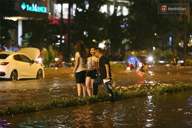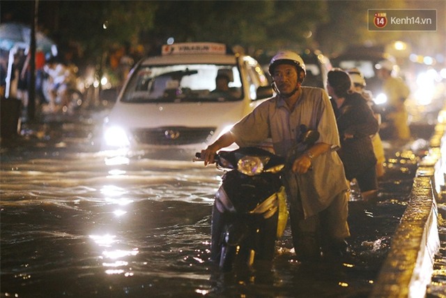 Anh Trần Thanh Tùng (nhà quận 2) cho biết: "Chạy tới thì chết máy, lùi cũng không còn đường nên chỉ biết đứng dưới mưa chịu trận, chờ nước rút, nhưng đã gần 4 tiếng rồi mà nước vẫn còn cao quá nên chưa biết làm sao để về nhà".